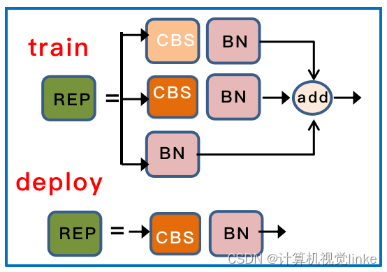 - REP模块分为两个,一个是train,也就是训练,一个deploy,也就是推理。
